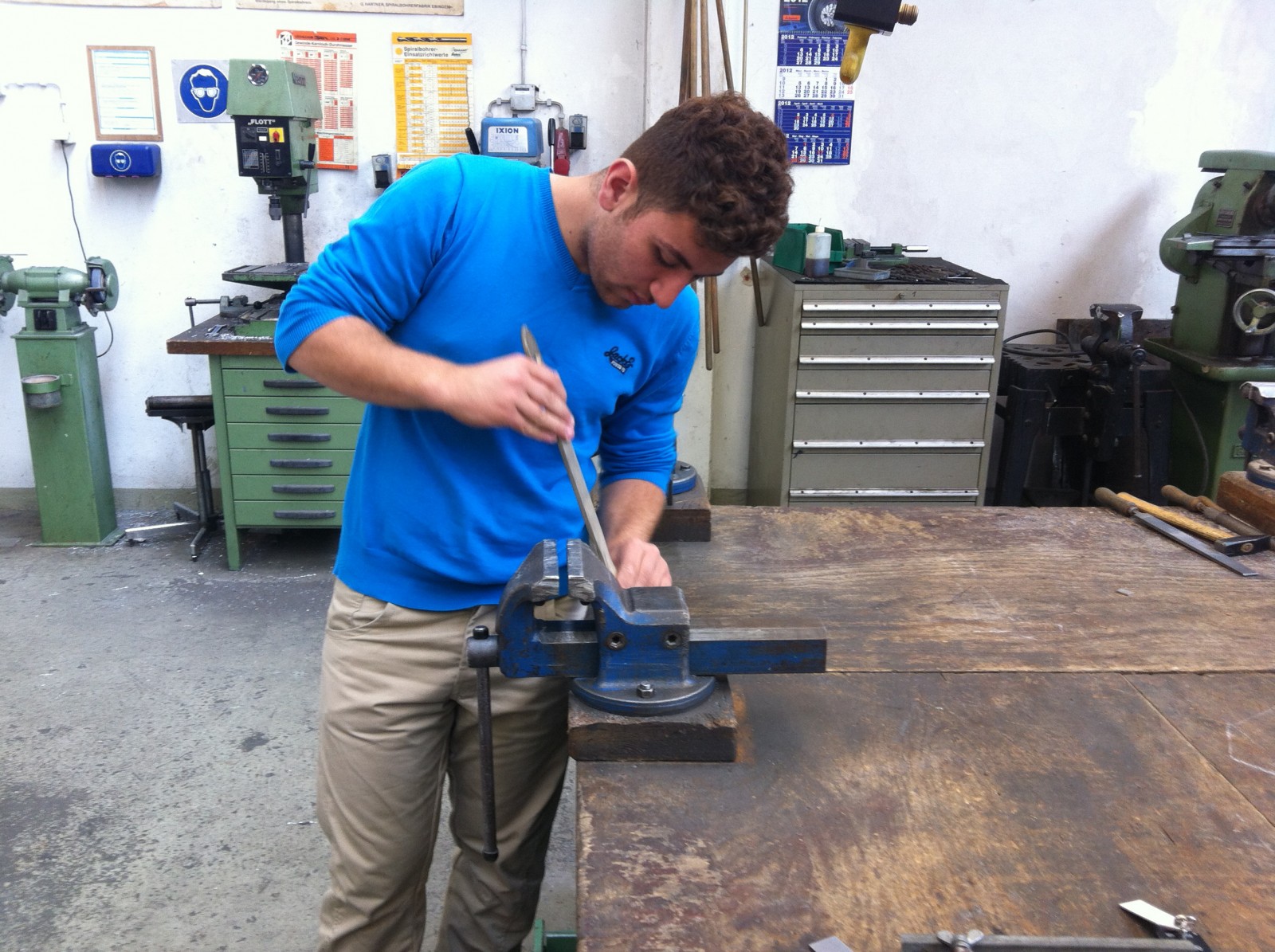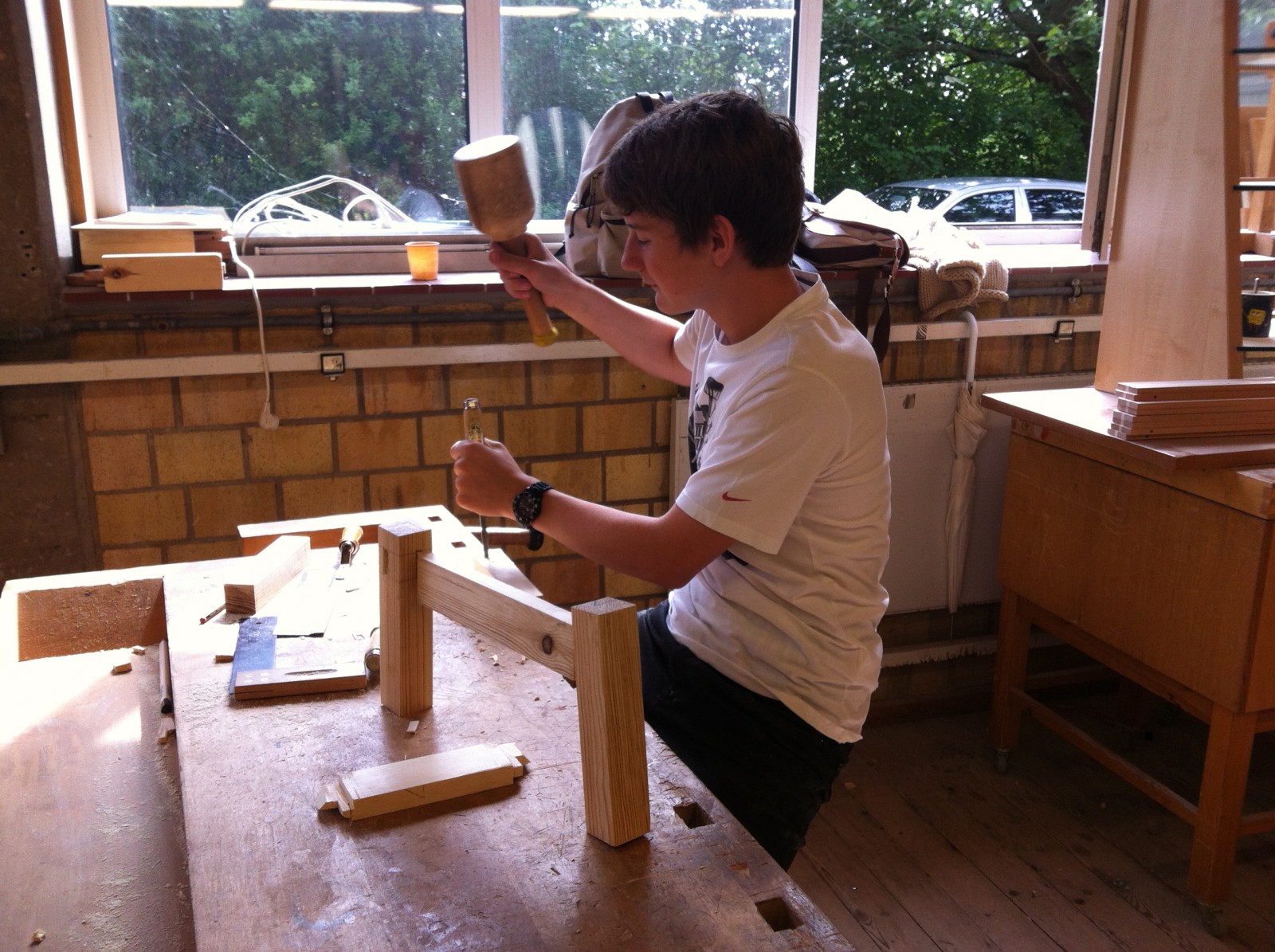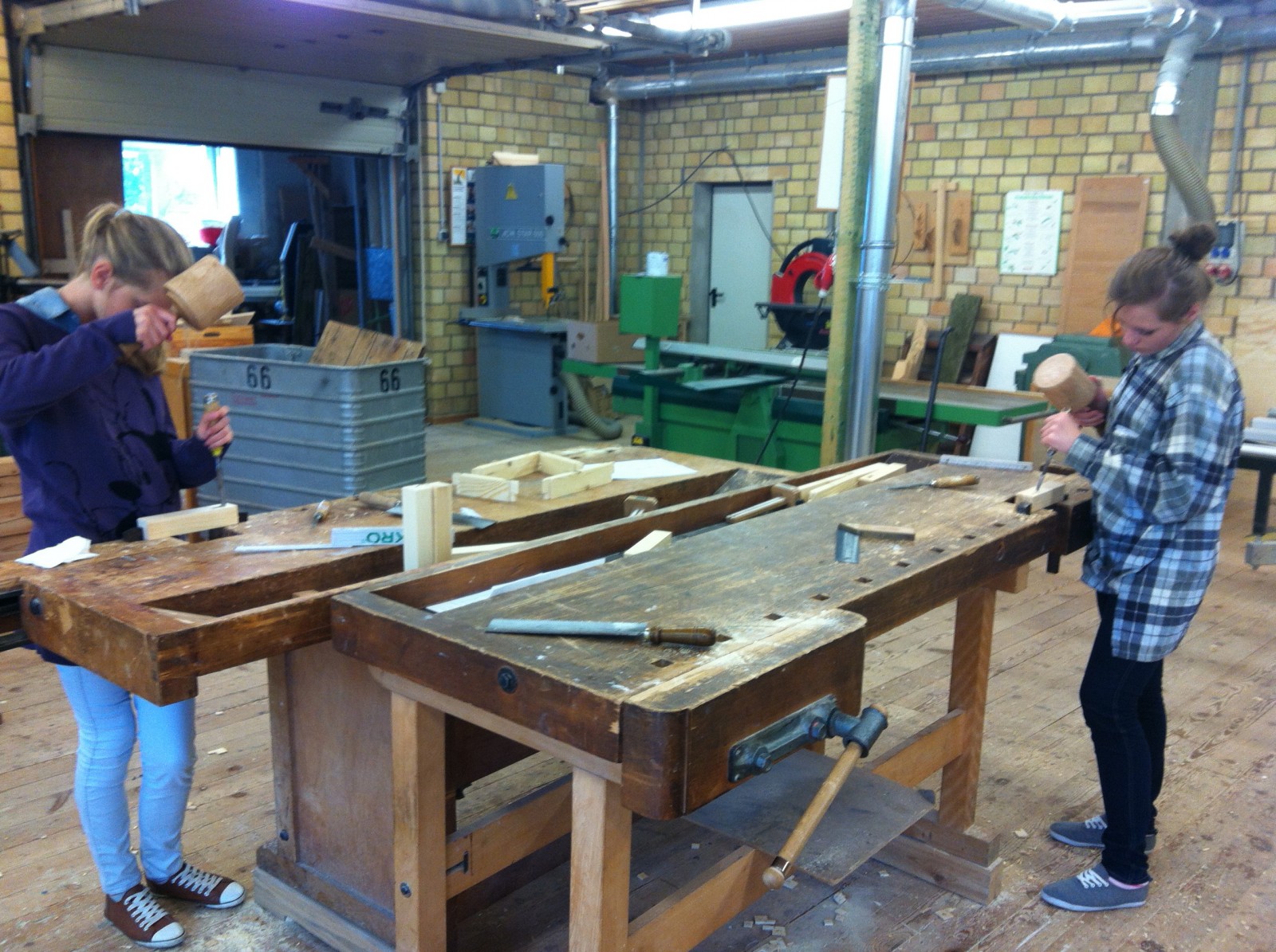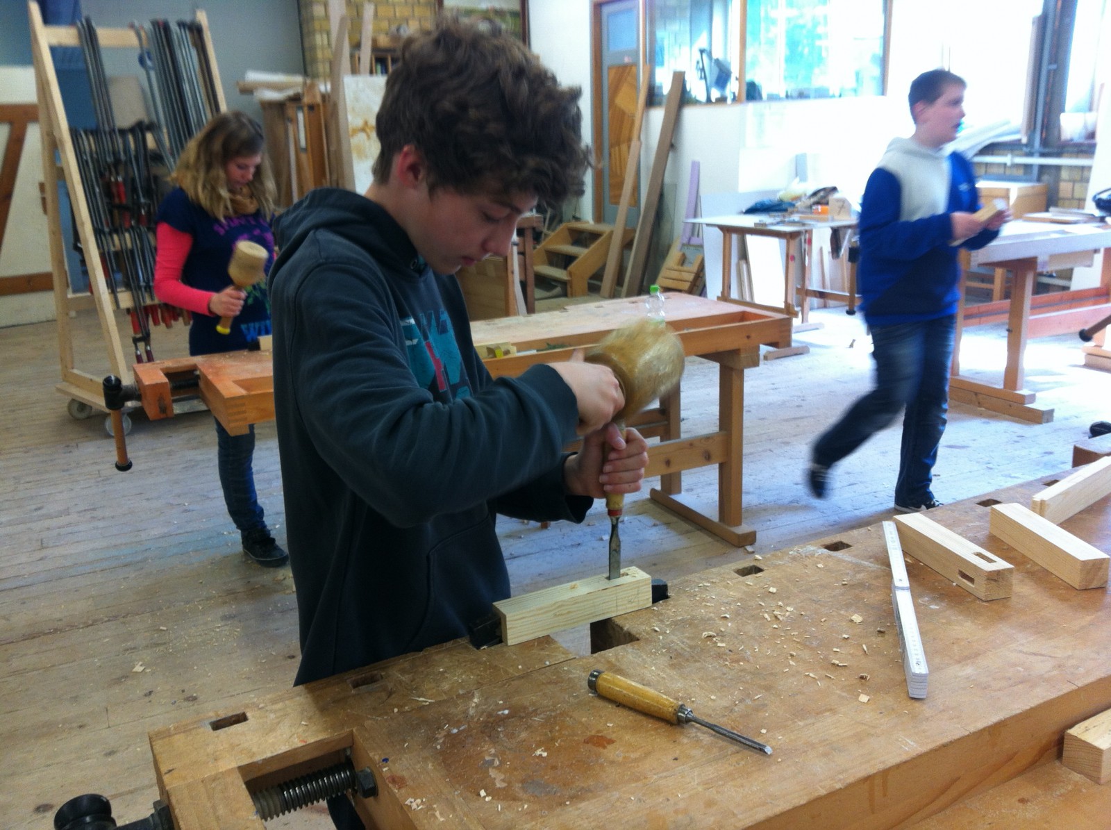 Gearbeitet wurde in den Bereichen Holz und Metall, dem sich die Jugendlichen nach persönlichem Interesse zuwandten. Das Ziel der „Holzbauer“ bestand darin, bis zum Ende der Woche einen kleinen Hocker zu erstellen. Ihr betreuender Werkstattmeister zeigte ihnen dafür Schritt für Schritt die benötigten Techniken und Arbeitsgeräte. Angefangen vom Anzeichnen und Anreißen, übers Aussägen und Leimen bis hin zum Feinschliff des Werkstücks wurden alle Arbeiten von den Heranwachsenden selbstständig ausgeführt. Durch die doch ungewohnten, aufwendigen und zum Teil kräftezehrenden Arbeiten in der Werkstatt war es kaum verwunderlich, dass neben dem Feierabend auch die Pausen sehr willkommen waren. So mancher Schüler wünschte sich zwischenzeitlich insgeheim doch auf die Schulbank zurück. Am Freitag war jedoch ausnahmslos jeder stolz, das Werkstück fix und fertig mit nach Hause nehmen zu können.