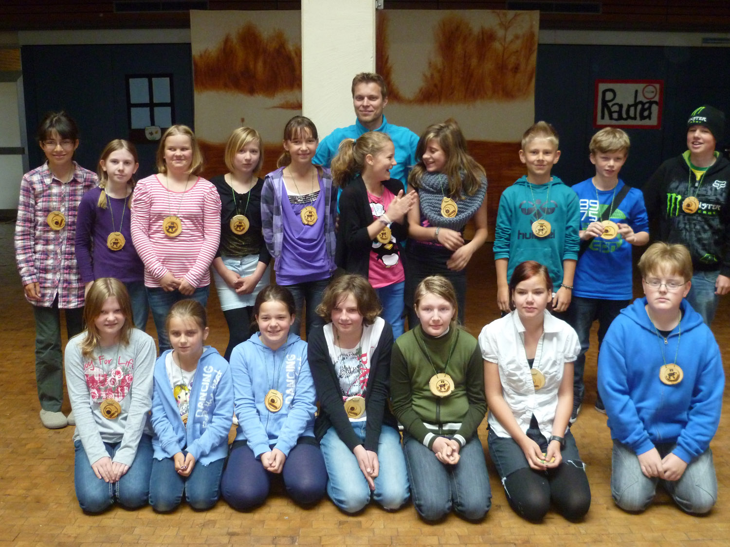In kleinen Gruppen traten die einzelnen Klassen gegeneinander an, um die 14 Stationen im Wald abzulaufen und die teilweise recht kniffligen Aufgaben zu lösen. Das Bestimmen von Bäumen, Tieren und Tierlauten, das Erkennen von Märchen und als eines der Highlights das „Förstermobil“, in dem zahlreiche Waldtiere als Präparate ausgestellt waren, warteten im Wald auf die Schülerinnen und Schüler.
