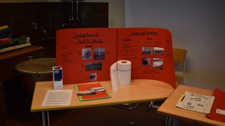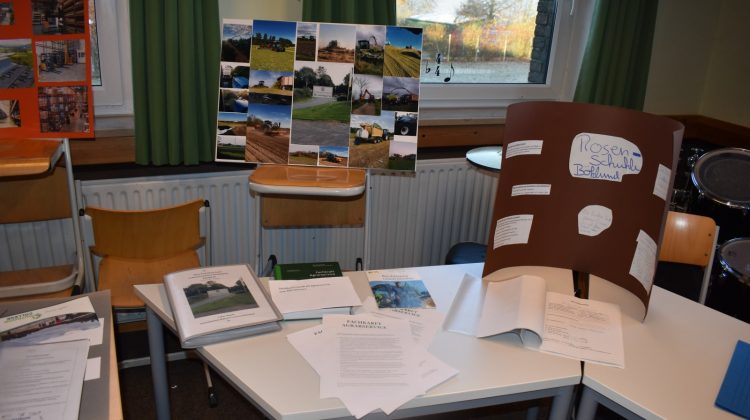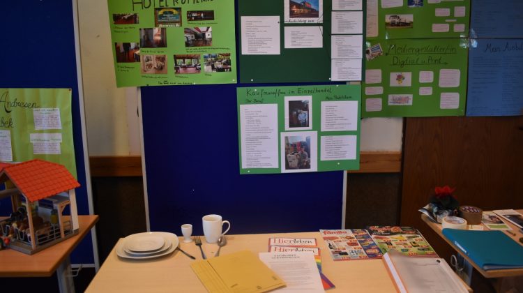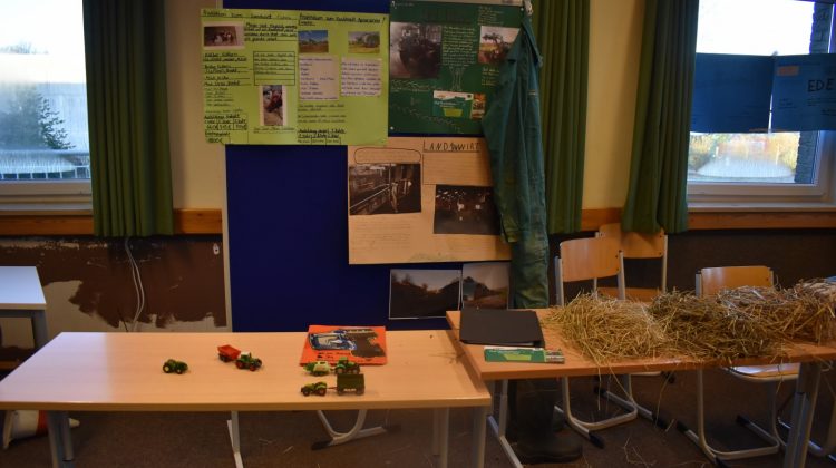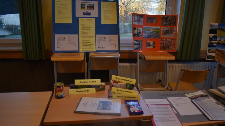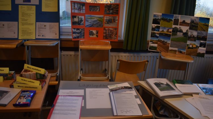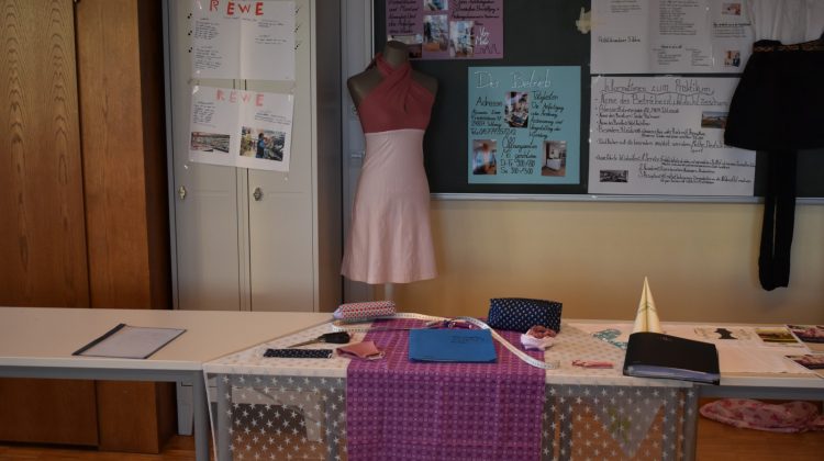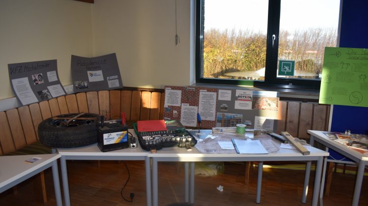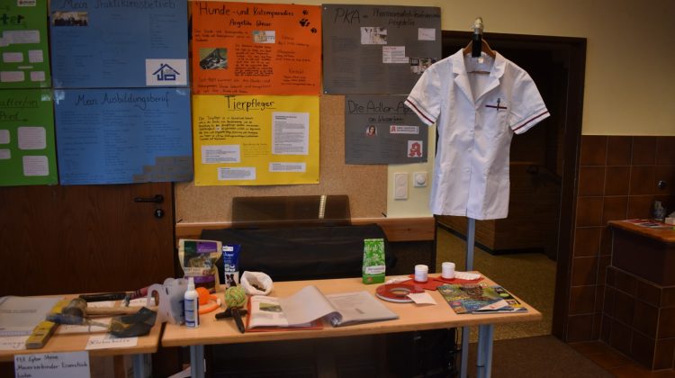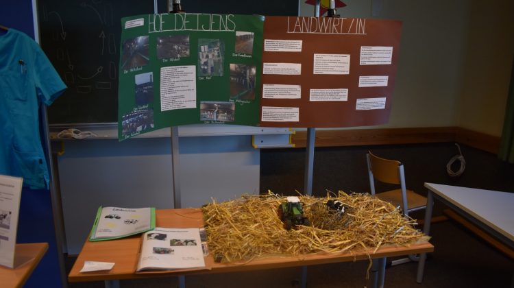 selbst erarbeitete „Kunstwerke“, z. B. kunstvoll gefaltete Servietten, ein selbst entworfenes sowie genähtes Kleid, gebastelte Laternen, ausgestellt. Auch ein landwirtschaftlicher Betrieb wurde durch das Ausstreuen von Heu kreativ nachgebildet. Weiterhin lagen die Praktikumsmappen zur Durchsicht bereit. Somit wandelten nacheinander die 7. und 8. Klassen mit ihren Klassenlehrkräften begeistert durch die „Messehallen“ und konnten auf vielfältige Art und Weise in die Berufswelt blicken sowie die unterschiedlichsten Ausbildungsberufe der einzelnen Berufsbereiche, z. B. Handwerk, Landwirtschaft, soziale sowie kaufmännische Berufe, erkunden und Anregungen für das eigene Praktikum, welches dann im nächsten Jahr für beide Klassenstufen ansteht, sammeln.