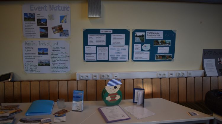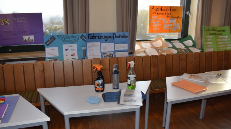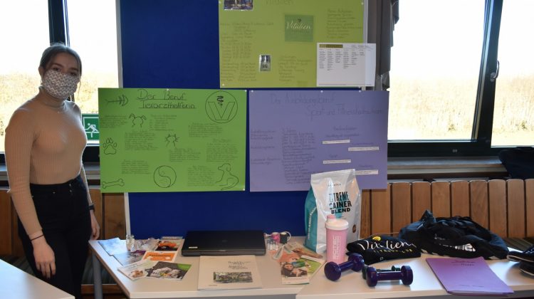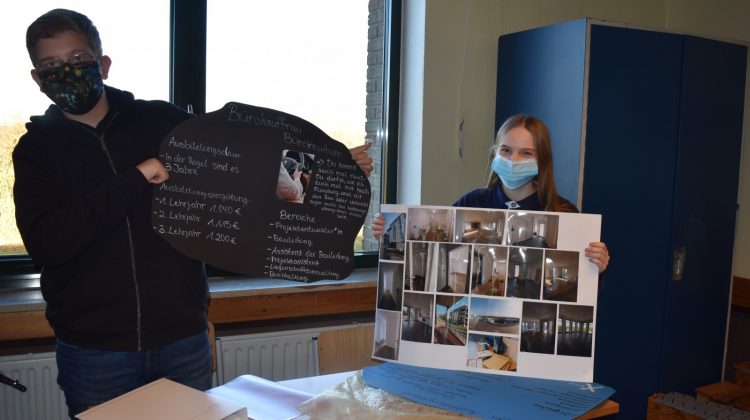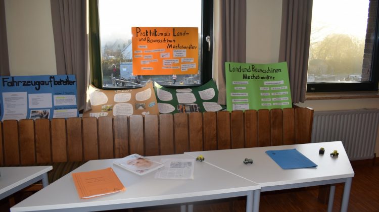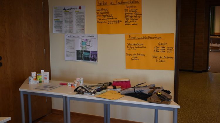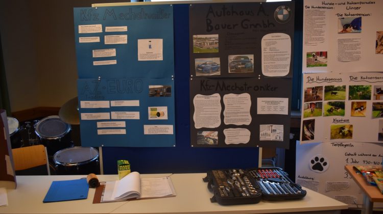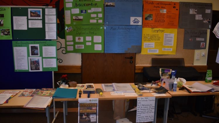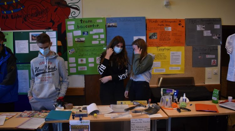 Trotz der Corona-Pandemie konnte der 9. Jahrgang vor den Herbstferien das geplante zweiwöchige Betriebspraktikum zur beruflichen Orientierung absolvieren. Die Schülerinnen und Schüler hatten somit unter der Beachtung der entsprechenden Hygienevorschriften wieder die Gelegenheit, je nach Wunsch in die unterschiedlichsten Berufsbereiche hineinzuschnuppern und den entsprechenden beruflichen Alltag kennenzulernen. Im Anschluss an das Praktikum erstellten sie eine umfassende Praktikumsmappe u.a. mit Tages- sowie Wochenberichten, Beschreibungen von typischen Arbeitsabläufen in dem erkundeten Ausbildungsberuf, Einschätzungen und Bewertungen über die geleistete Tätigkeit – und unsere 9. Klässler*Innen konzipierten einen Messestand zu ihrem erkundeten Beruf. Dieser Messestand sollte in diesem Jahr besonderen Ansprüchen gerecht werden – denn die „Praktikanten“ konnten aufgrund der „Kohorten“ ihren Stand leider nicht persönlich den 7. und 8. Klassen präsentieren, sodass dieser in diesem Jahr „für sich sprechen musste“! Diese außergewöhnliche Messe-Präsentation gelang unseren 9. Klassen hervorragend, indem informative Plakate bzw. PowerPoint-Präsentationen über die Praktikumsbetriebe, Tätigkeiten und die erkundeten Ausbildungsberufe sowie deren Rahmenbedingungen und Anforderungen ausführlich und liebevoll gestaltet wurden. Auch wurden zur Veranschaulichung besondere Betriebsmittel, z. B. Werkzeuge, Werkstücke, Arbeitskleidung, jeweilige Produkte, interessante Firmenprospekte und