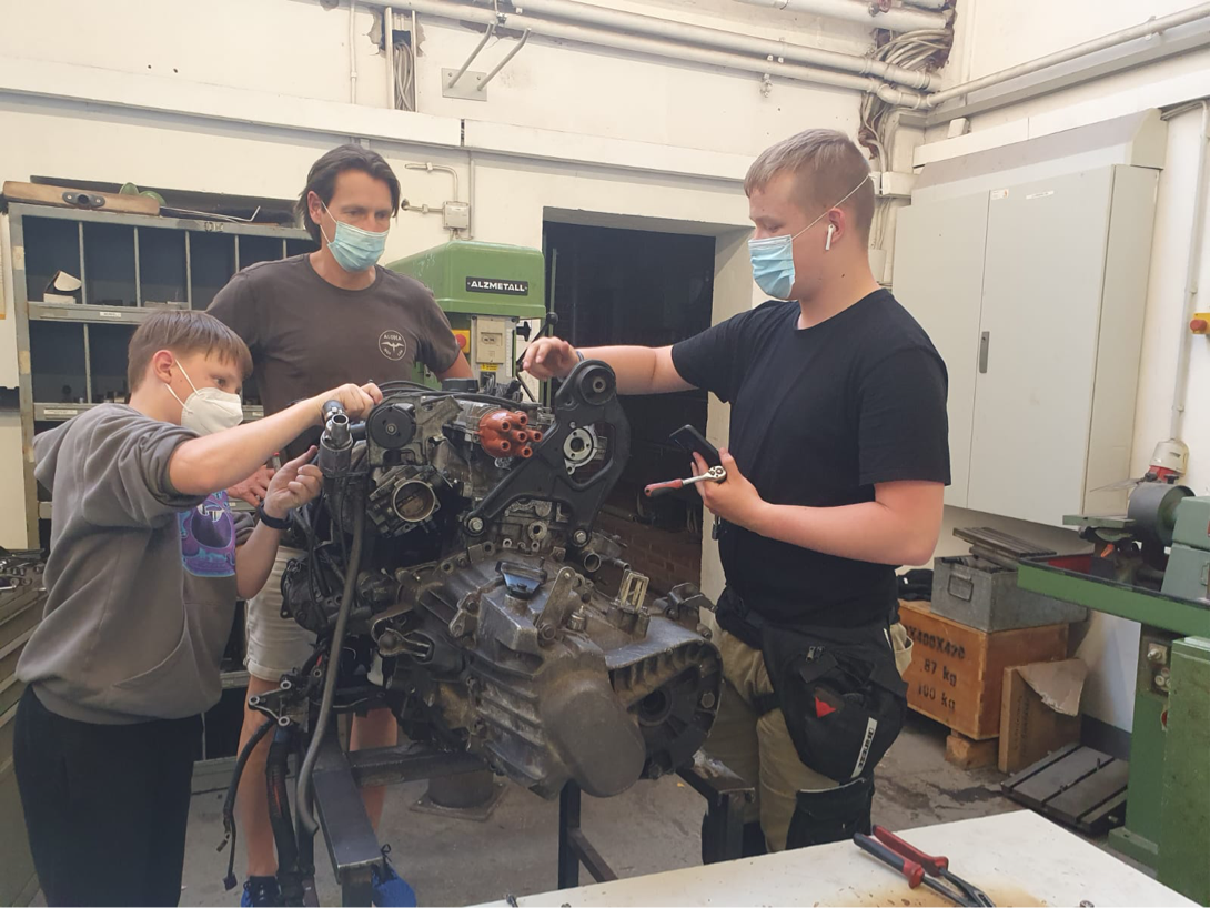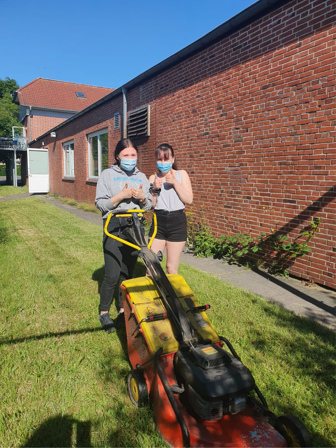 Wer unsere 8. Klassen kennt, wäre bestimmt nicht überrascht, dass sie innerhalb der Gewerke verschiedene Wettbewerbe angezettelt haben. Der Lernerfolg bei einem Wettstreit um den schnellsten Reifenwechsler ging an Jonas aus der 8a. Damit war das Gewerk von der Theorie in die Praxis umgesetzt worden. Auch die Mädchen der 8a und 8b reparierten den Rasenmäher und zeigten gleich ihr Geschick beim praktischen Arbeiten auf der Rasenfläche. Michelle (8a) und Linda (8b) konnten stolzer nicht sein.