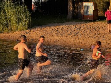Die Sommerhitze wurde mit Eis bekämpft, die Langeweile durchs Baden in der Treene. Wenn die 6c eines zur Genüge getan hat, dann ist es baden. Schließlich mussten wir die Nähe des Freibads zur Jugendherberge ausnutzen!